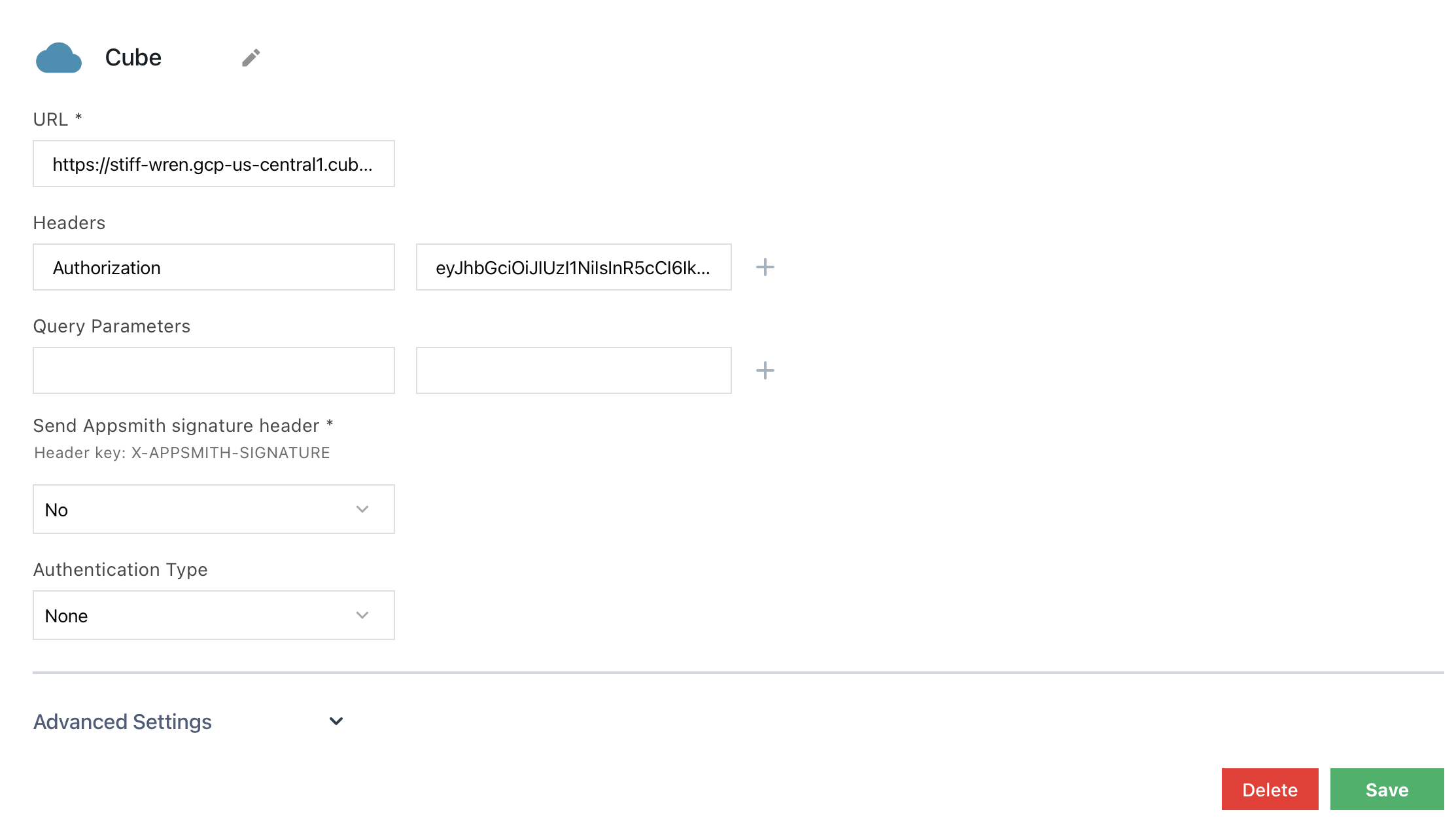 You can connect a Cube deployment to Appsmith using the REST API. For a Cube instance publicly available at a specificHOST, the REST API URL