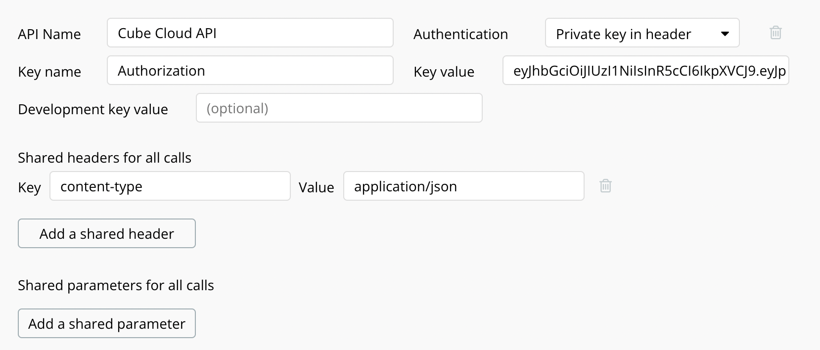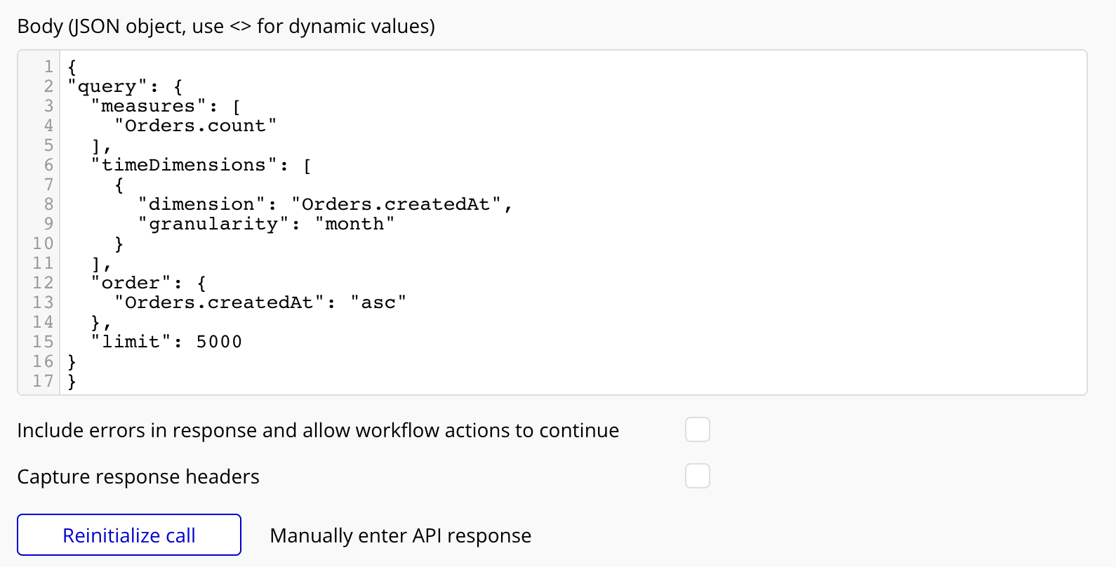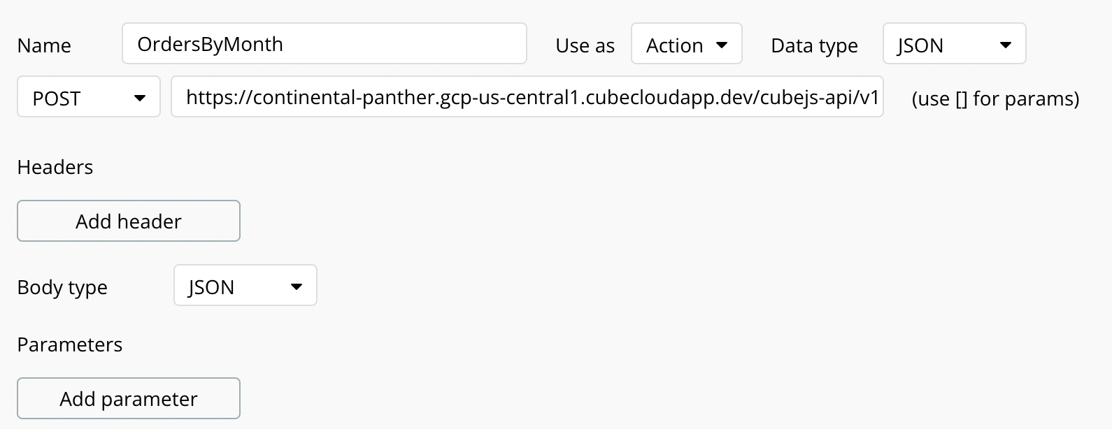 Click “Add another call”. Copy and paste the Cube REST API, including the/load path, in the API field.