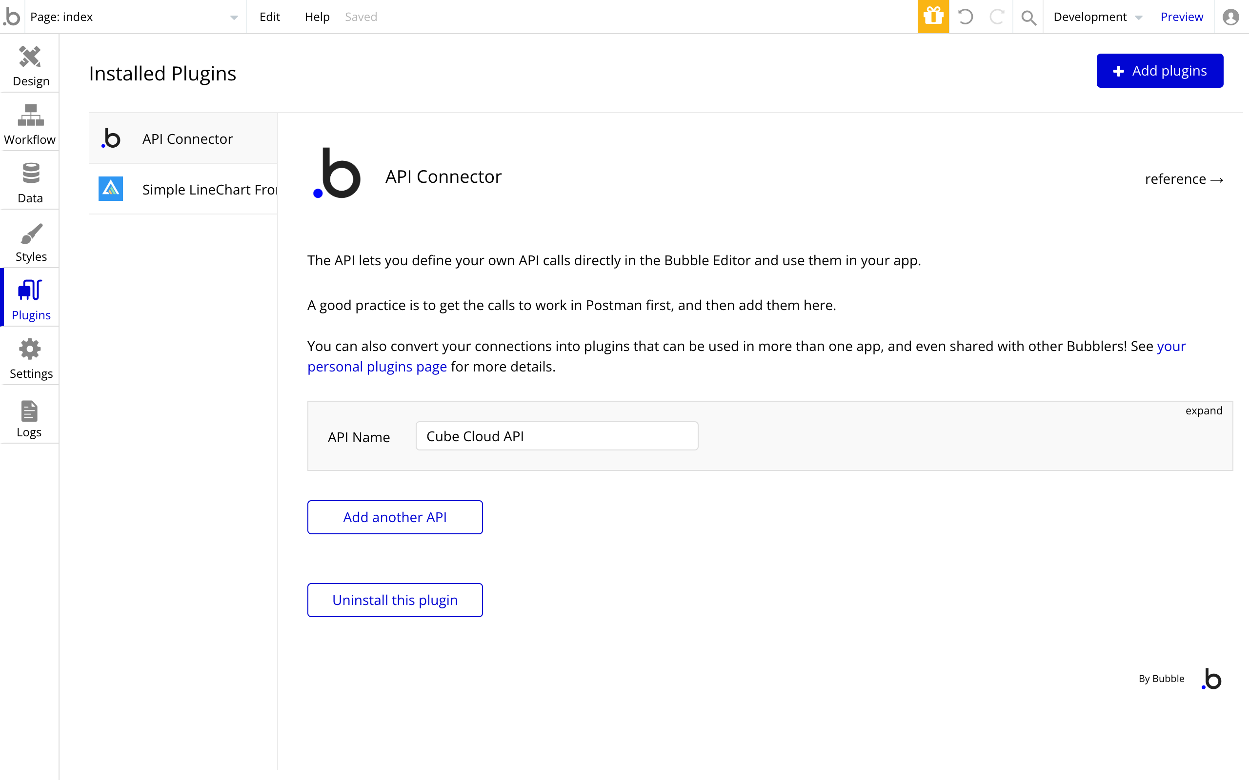 Navigate to the plugins. Select and install the API connector plugin.Create a new API